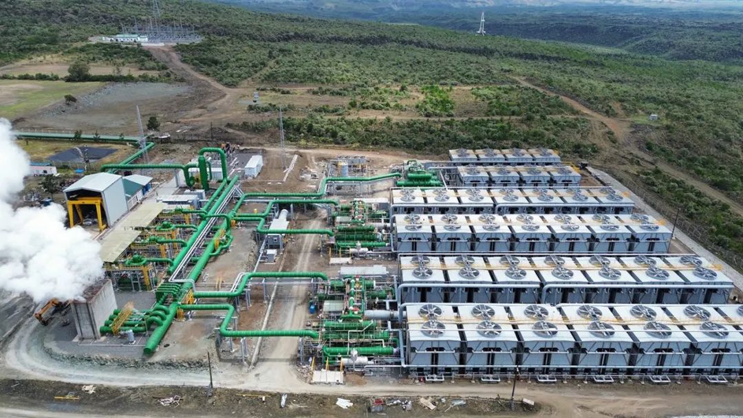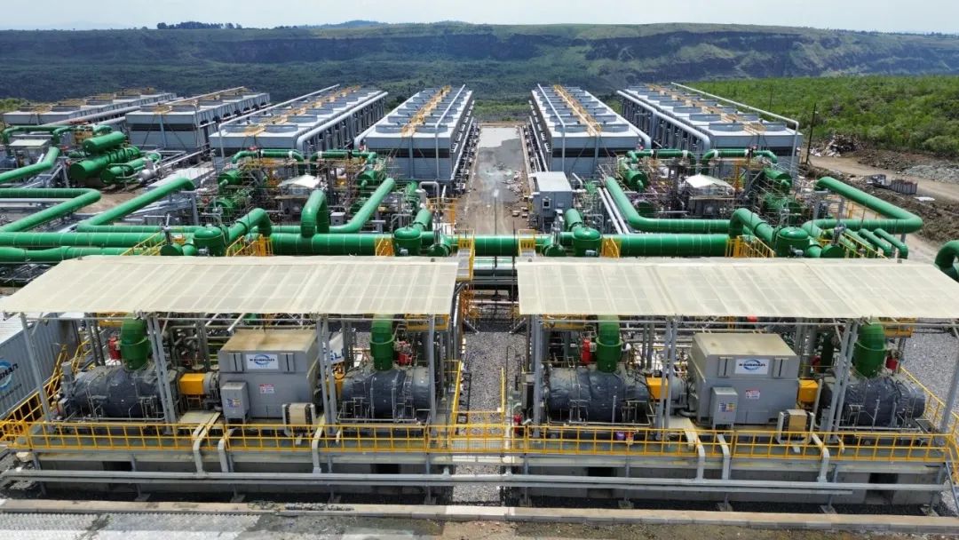 35 MWe 的 Sosian Menengai 地熱發電廠于 2023 年 8 月投入使用。該電廠使用兩臺開山地熱蒸汽反壓螺桿膨脹機,將廢氣排放到三個有機朗肯循環裝置中。圖片來源:開山集團