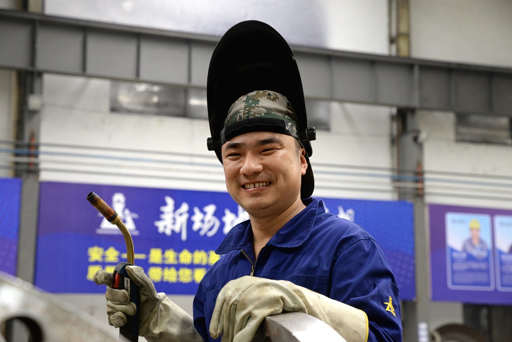 2002年,年僅18歲的姜梅進(jìn)入恒堅壓力容器公司,被安排在工業(yè)機(jī)班組從事埋弧焊工作,這個工作的難度在于焊接角度怎么調(diào)整,電流電壓與焊接速度的匹配。當(dāng)時帶他的師傅,是有著豐富經(jīng)驗的焊接老技師汪金生。汪師傅對人要求嚴(yán)格,對焊接工藝要求很高,小姜每次操作稍有不當(dāng),都會被汪師傅認(rèn)真指出。汪師傅經(jīng)常教導(dǎo)他:要成為一名優(yōu)秀的埋弧焊接師傅不僅要吃得起苦,受得起累,還要在日常工作中善于觀察,善于尋找新的方法。