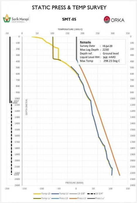 昨天,開山總公司收到印尼SMGP項目公司關于T平臺T-05井測試報告,在2230米處錄得資源層最高溫度達到298℃,之前錄得的最高資源溫度為A107井的278℃。